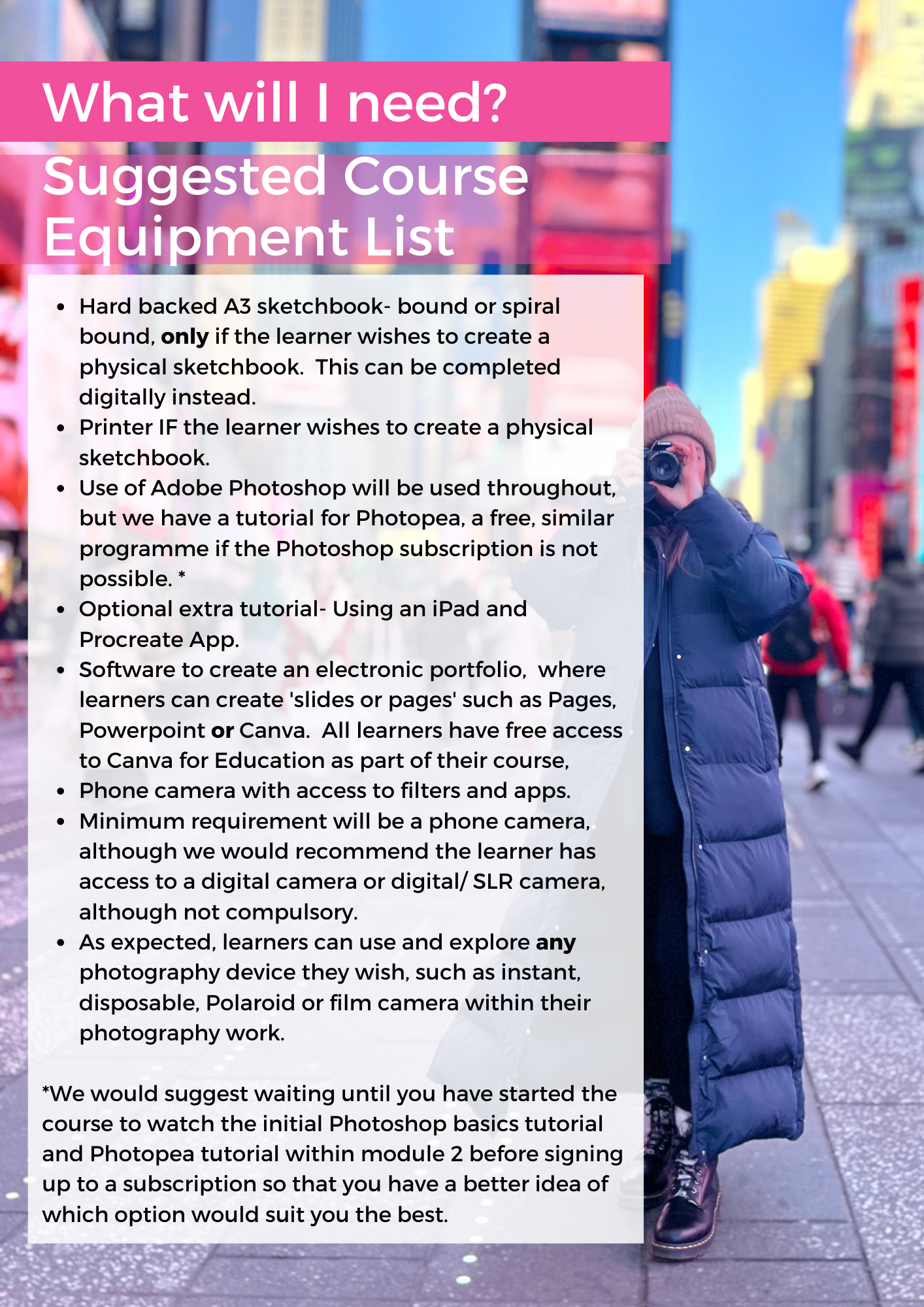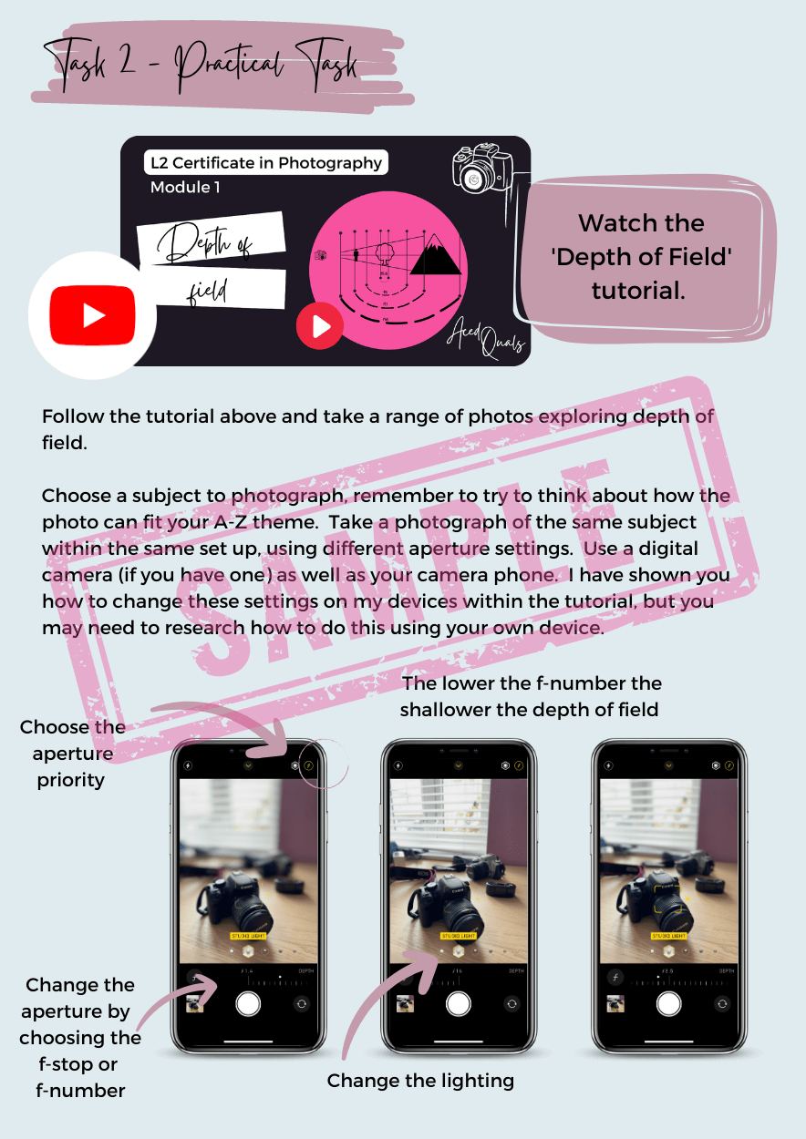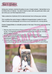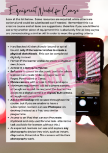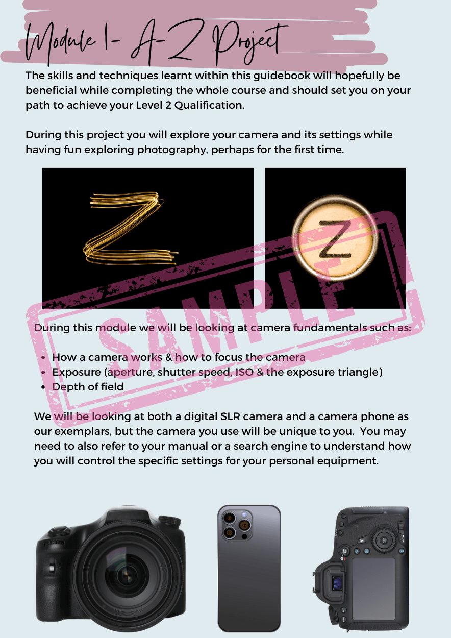- The minimum requirement is a phone camera, although we recommend that the learner has access to a digital camera or digital/SLR camera, though this is not compulsory.