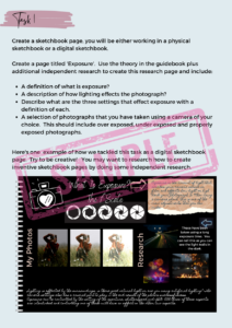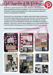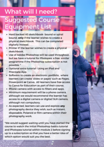 - Hard-backed A3 sketchbook — bound or spiral bound, but only if the learner wishes to create a physical sketchbook. This can also be completed digitally instead.
