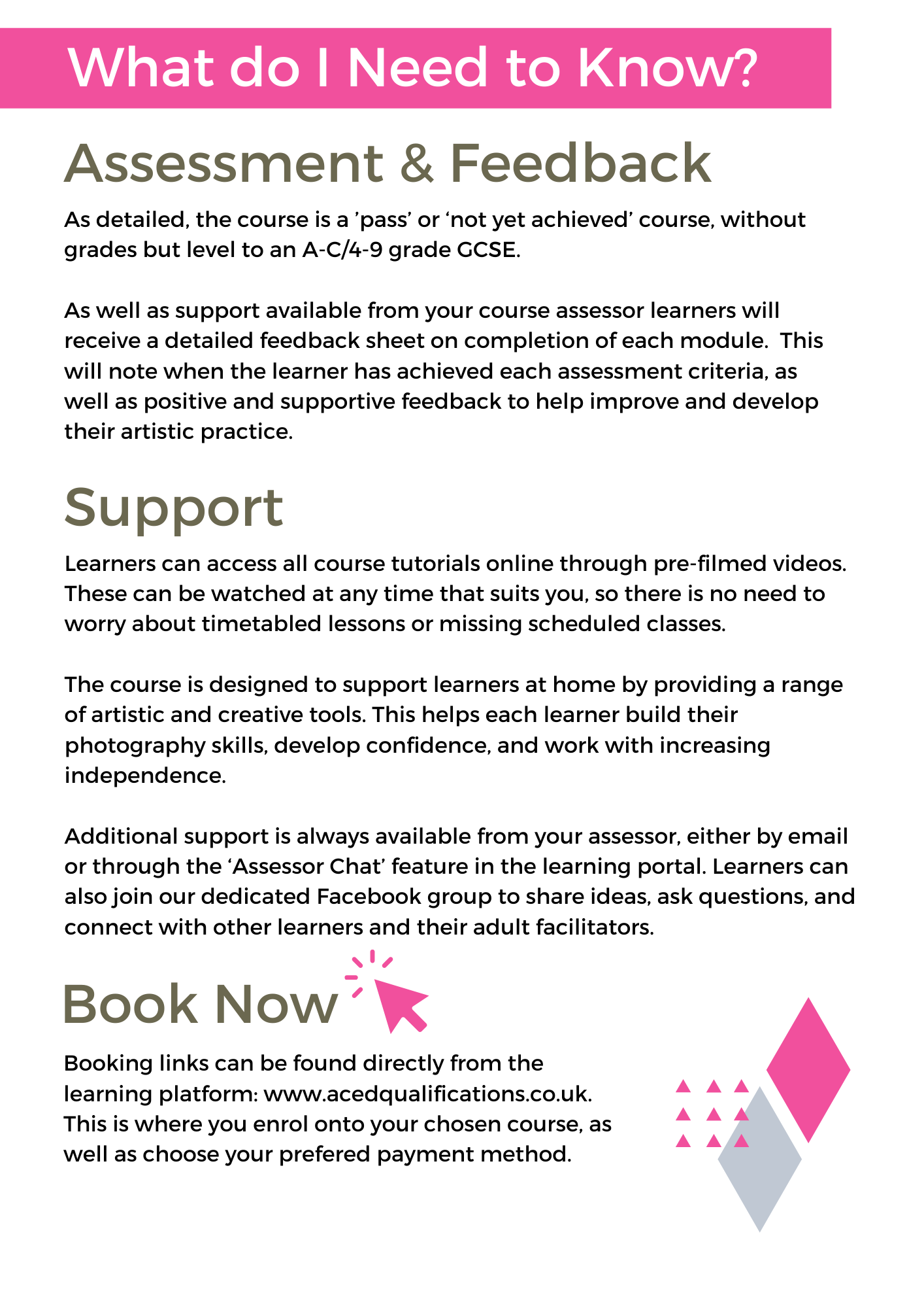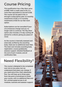 Work will be assessed online, with positive and encouraging feedback periodically throughout the course. On successful completion of the 10 modules, our learners will receive their Ofqual accredited certificate, comparable to a GCSE (A-C/4-9 grade).