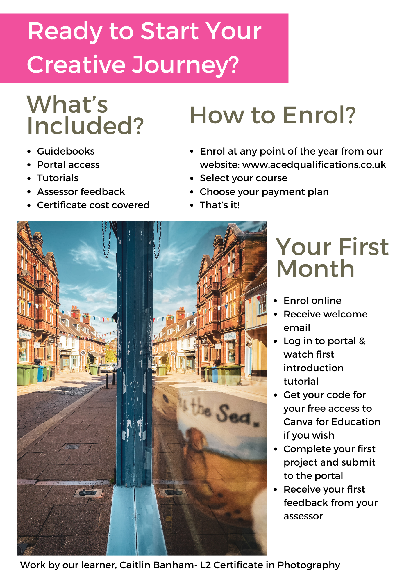 If you have a learner who is passionate about capturing images, wants to develop their technical skills and enjoys exploring their creativity through photography, this Level 2 Photography course is the perfect fit for them; completely online and flexible to suit their lifestyle.